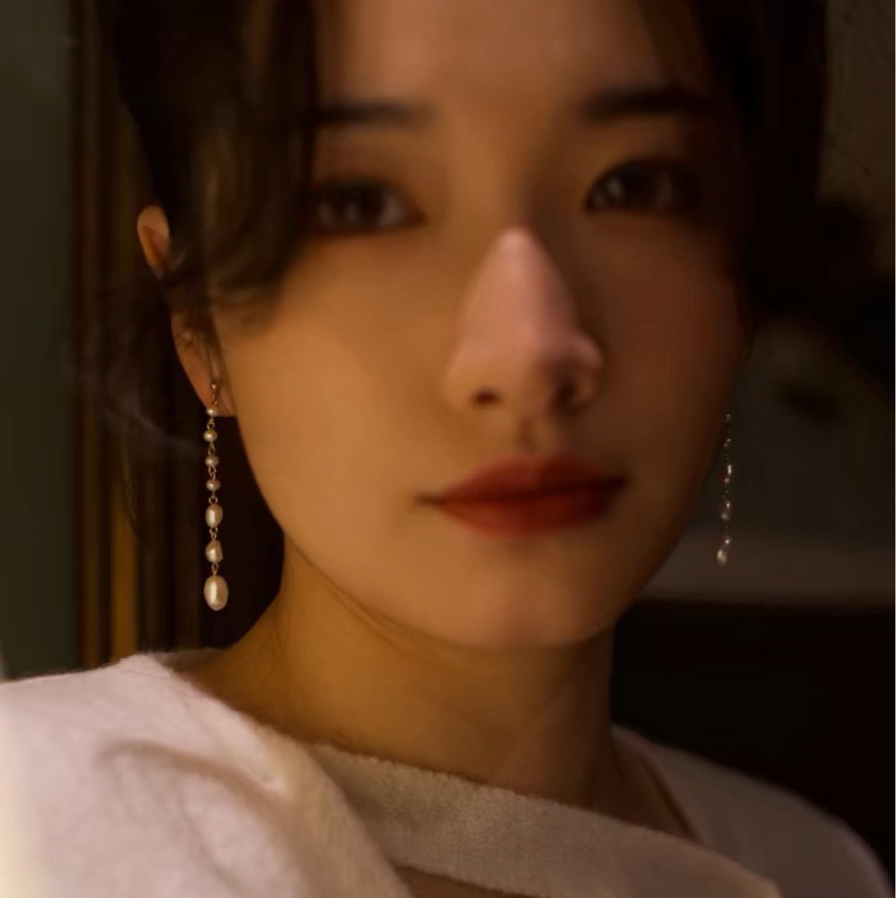 Boucles d'oreilles longues en perles d'eau douce naturelles de la série Élégance légère, élégantes et à la mode