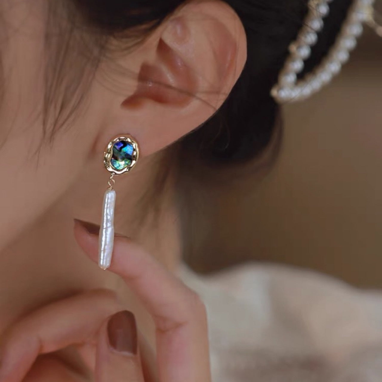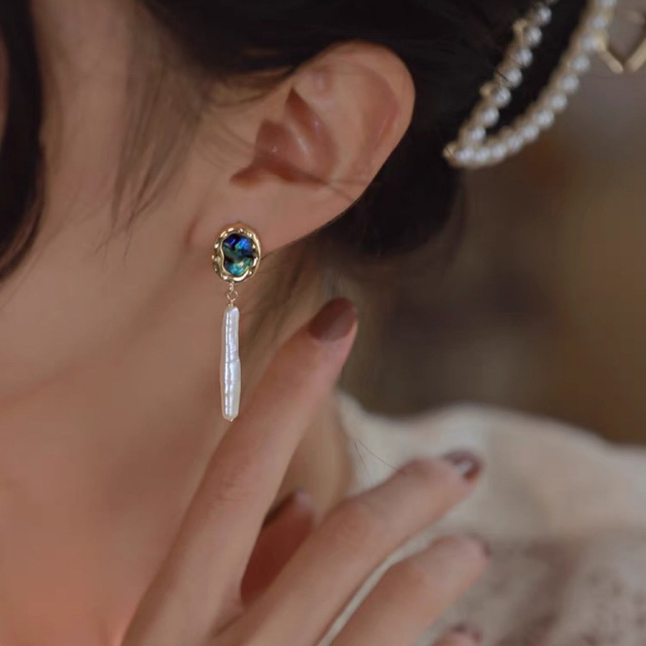 天然银条异形巴洛克珍珠耳环法式复古时尚简约新款气质女生简约