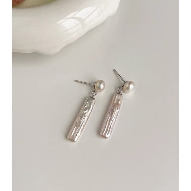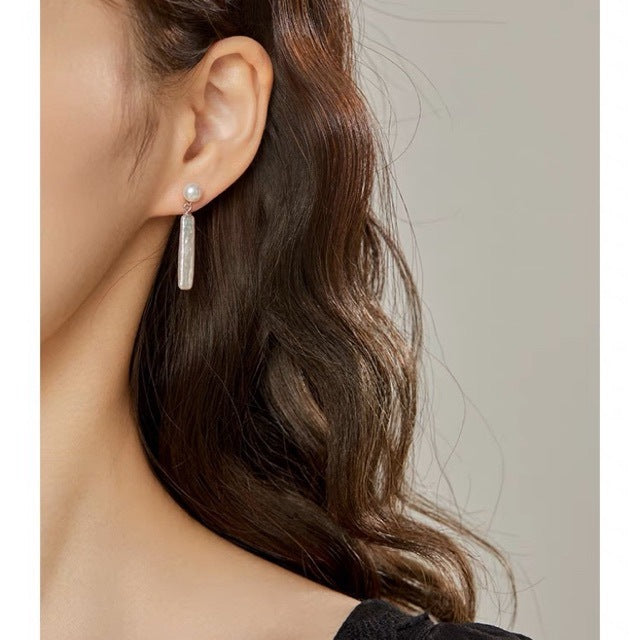 独特巴洛克天然淡水珍珠耳环女法式复古设计气质长款耳坠s925素银