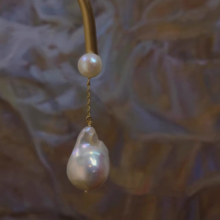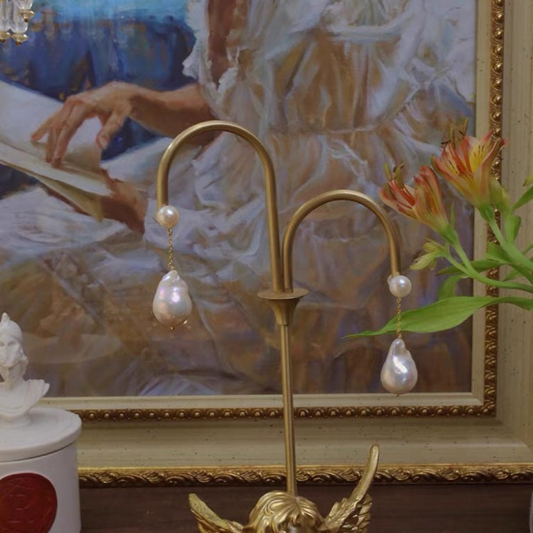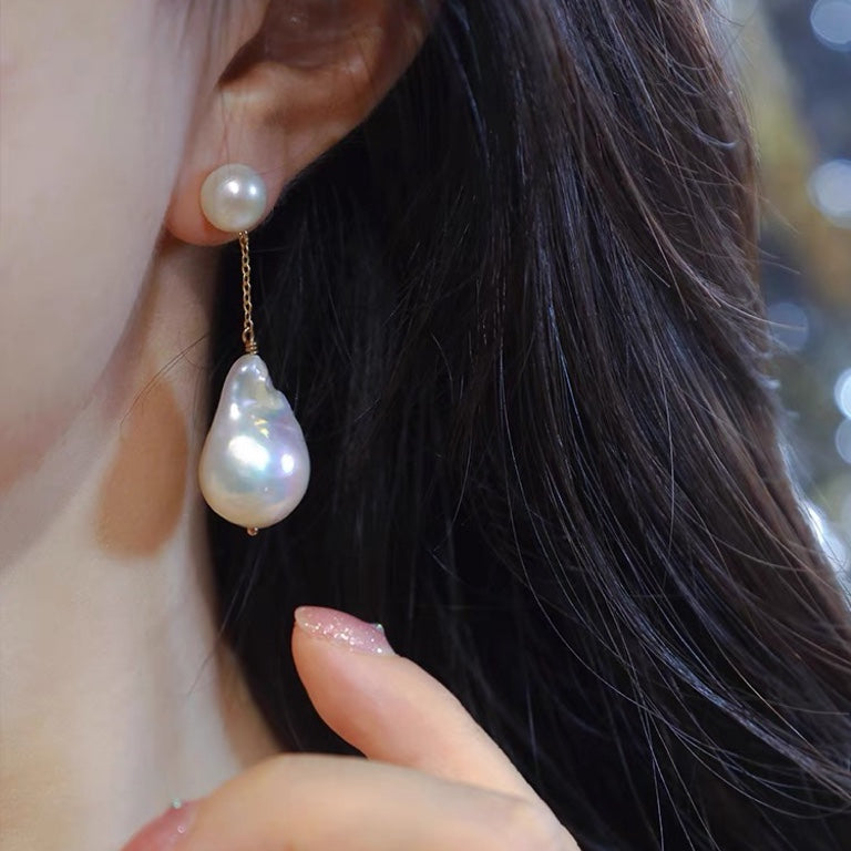 新款复古天然大巴洛克气质珍珠耳环女ins简约轻奢百搭银针韩