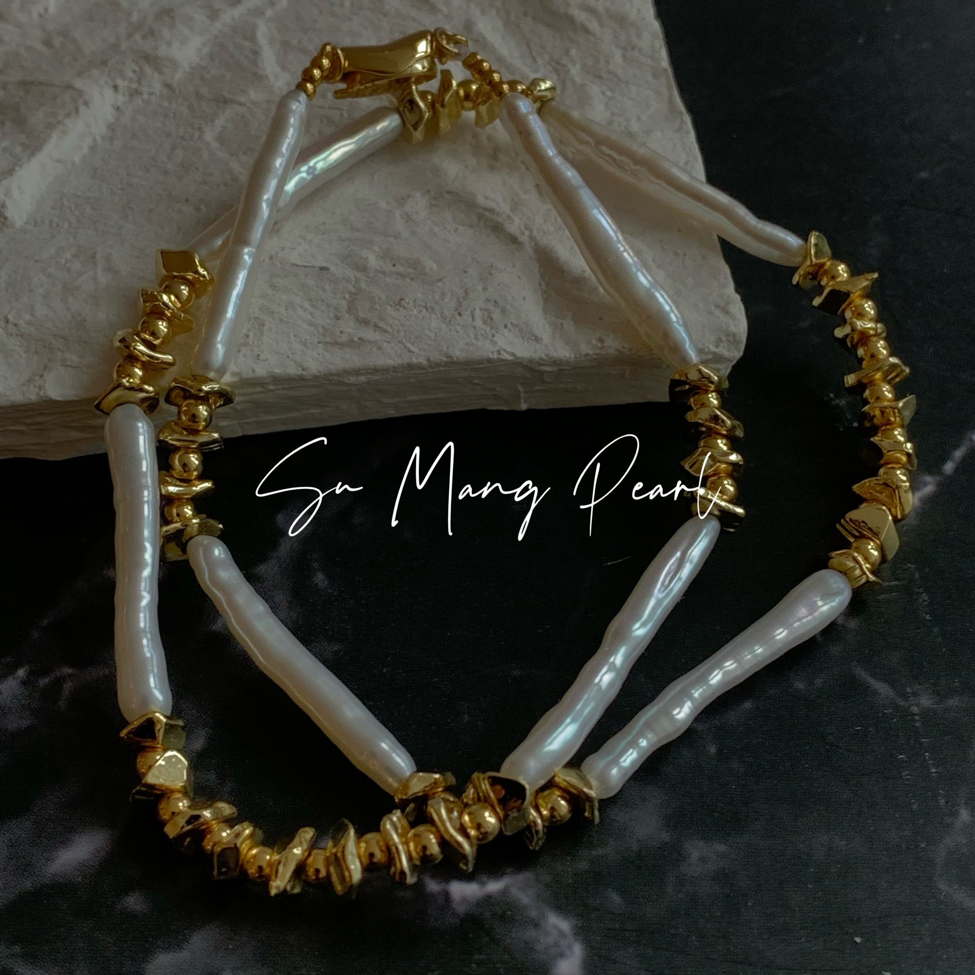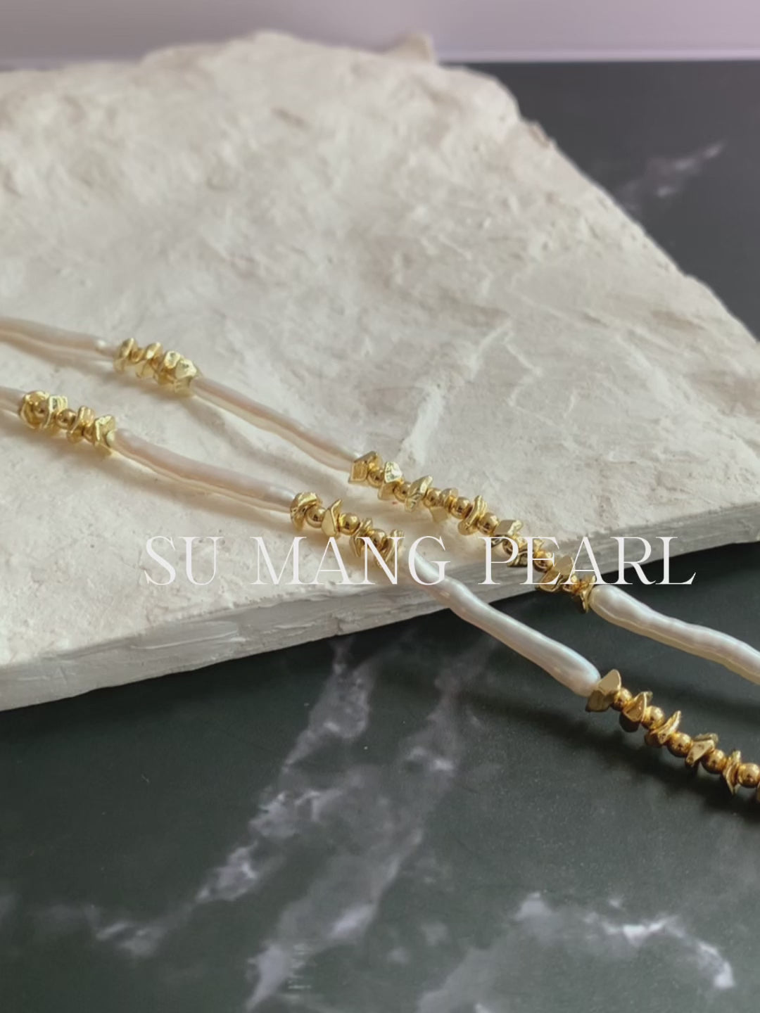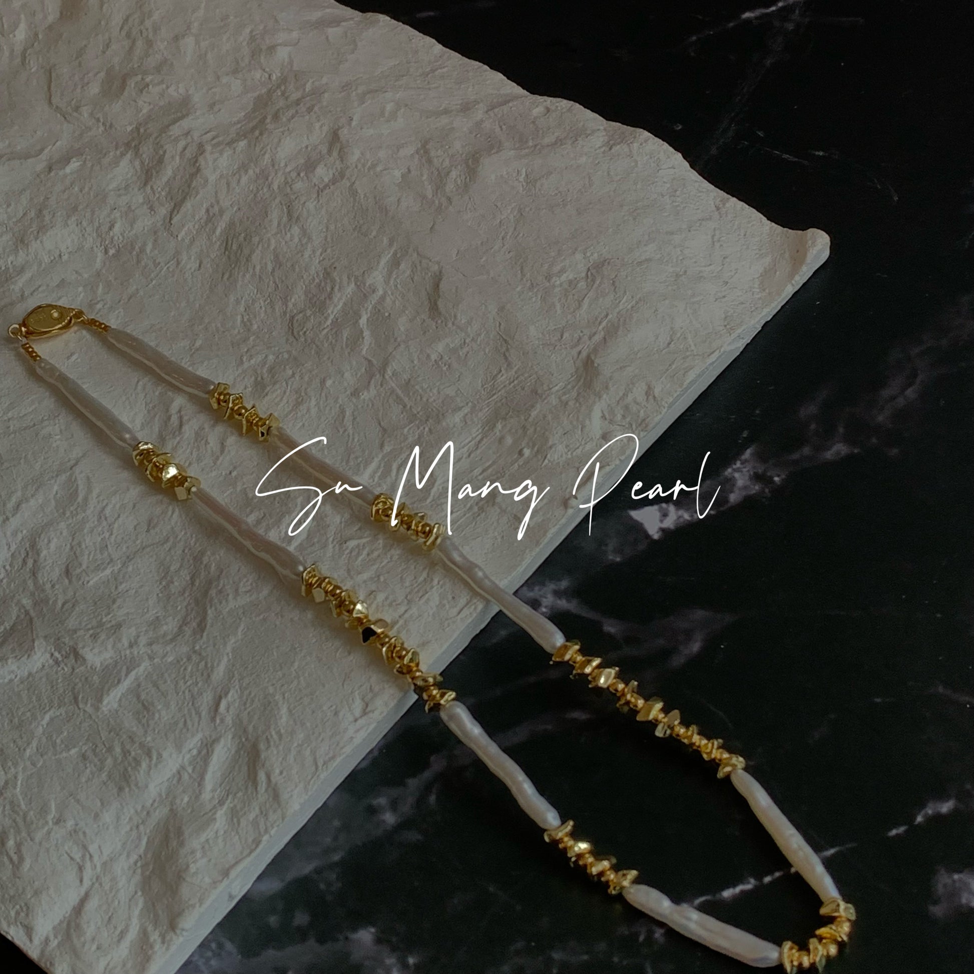 Chaque perle de cure-dent d'eau douce naturelle a sa propre texture et éclat naturels, mélangés à des pièces en métal doré. La collision du rétro et de la mode est absolument époustouflante~ Le porter autour de votre cou est comme une carte de visite ambulante de texture. C'est si niche que vous n'aurez pas le même style que les autres, et l'ambiance haut de gamme est directement attachée à vous!