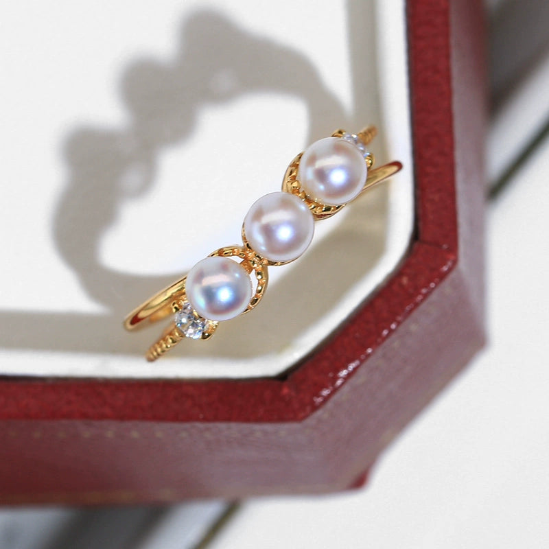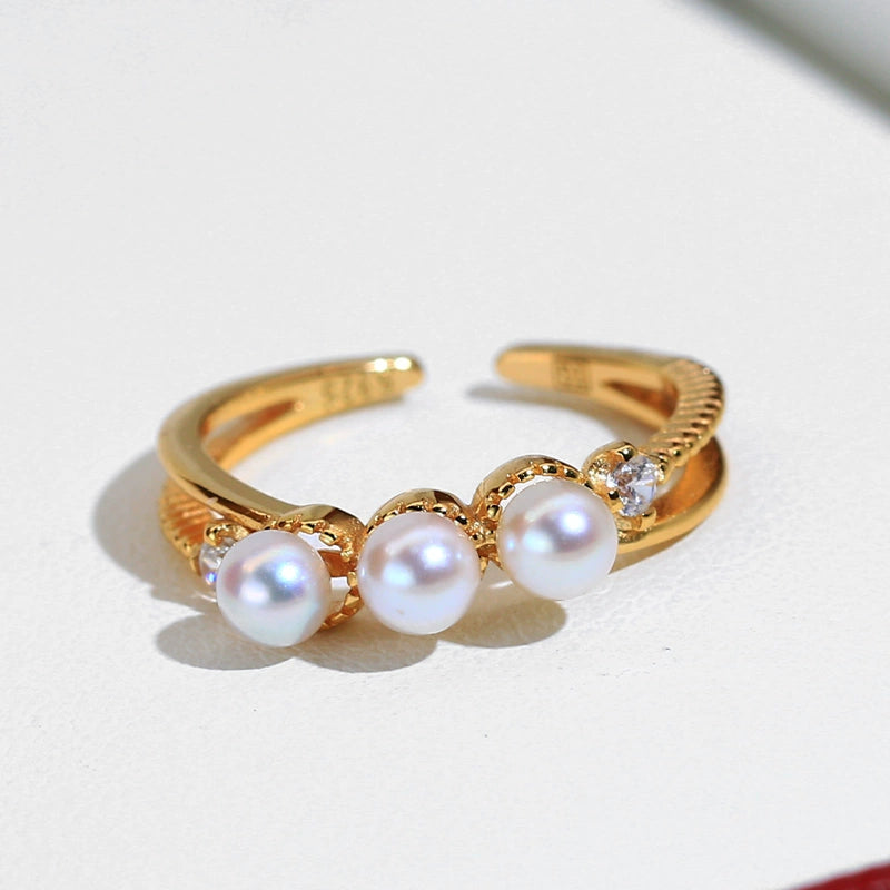 蘇芒珠寶 S925 純銀多珠戒指,鑲嵌 3-4 毫米天然淡水珍珠,享受奢華體驗